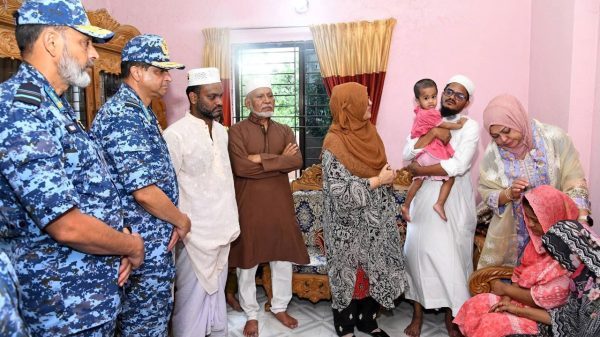 তিনি এই পরিবারগুলোকে যেকোনো প্রয়োজনে সর্বোচ্চ সহায়তা প্রদানের আশ্বাস দেন। সাম্প্রতিক মর্মান্তিক দুর্ঘটনা-পরবর্তী ধারাবাহিক কার্যক্রমের অংশ হিসেবে শুক্রবার (২৫ জুলাই) বিমান বাহিনী প্রধান এয়ার চিফ মার্শাল হাসান মাহমুদ খাঁন সস্ত্রীক