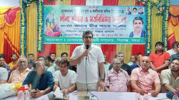 নিজস্ব প্রতিবেদকঃ শিবগঞ্জ উপজেলার মোকামতলা সর্বজনীন দূর্গা ও কালীমাতা মন্দির উন্নয়ন উপলক্ষে এক বিশেষ লীলা কীর্ত্তন ও মতবিনিময় সভা অনুষ্ঠিত হয়। আজ (২১ জুন) শনিবার সন্ধায় উপজেলার মোকামতলা সর্বজনীন দূর্গা
